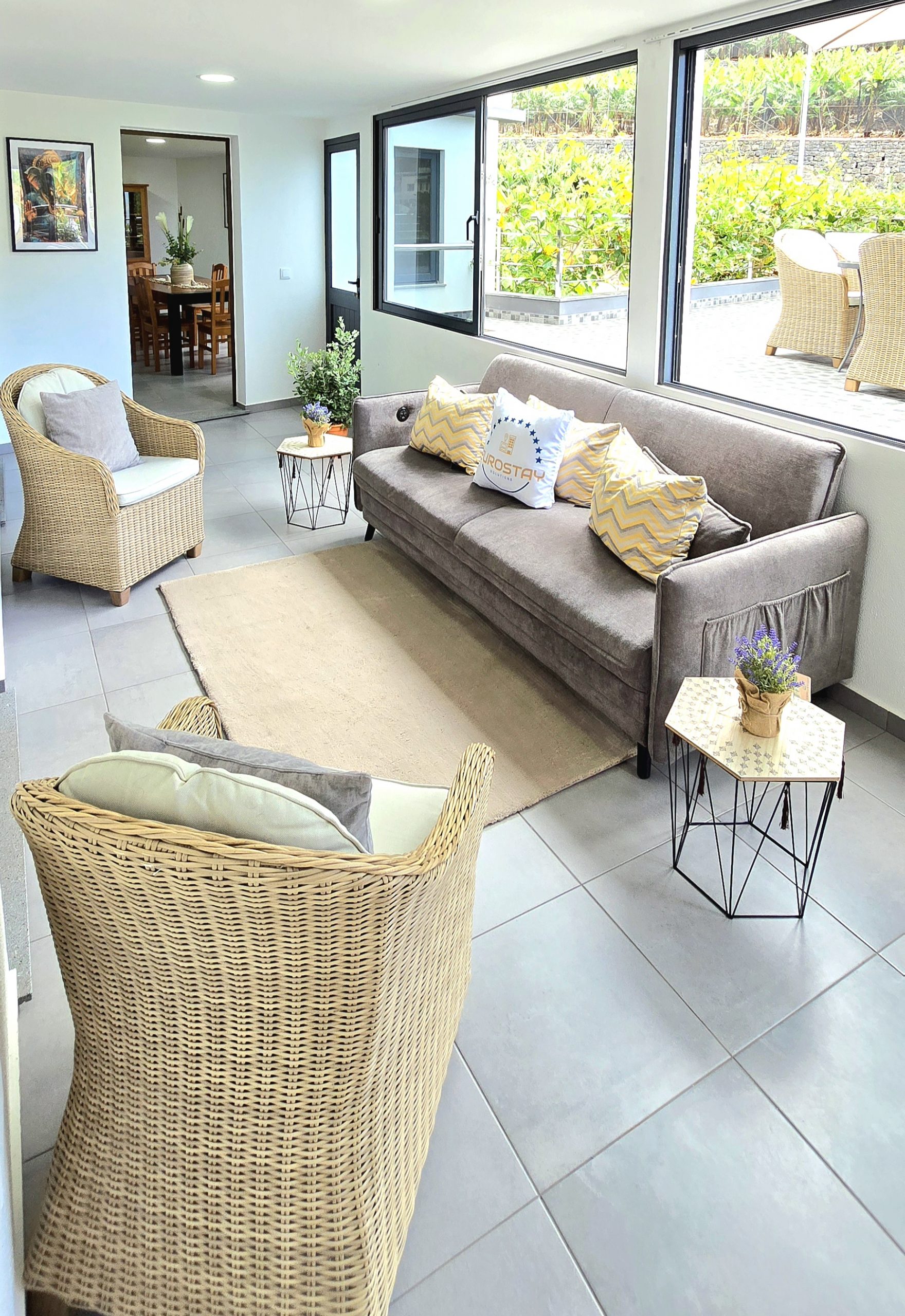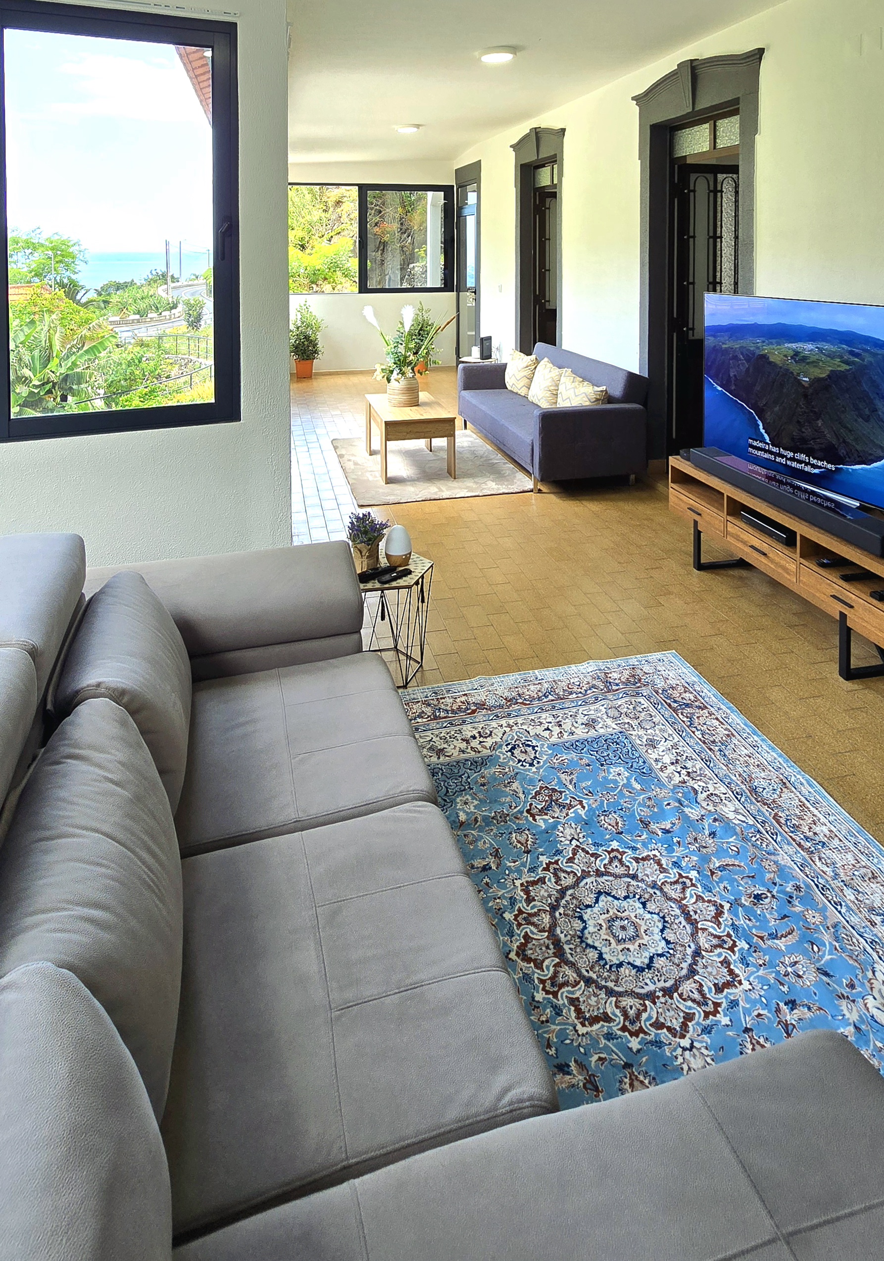 Our vacation home features 3 bedrooms and 2 full bathrooms, a fully equipped kitchen, and a cozy living room. The gardens are perfect for relaxing outdoors. The location is ideal for those looking for vacation rentals in Madeira with an authentic, traditional feel.