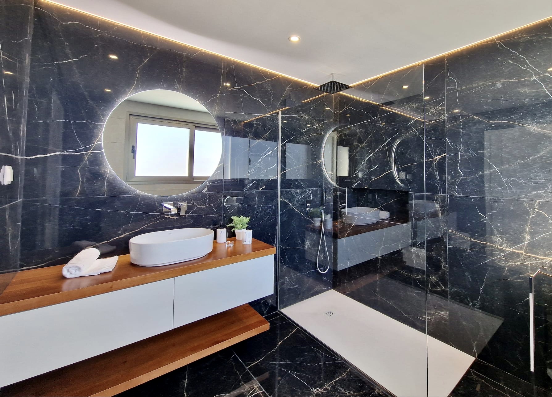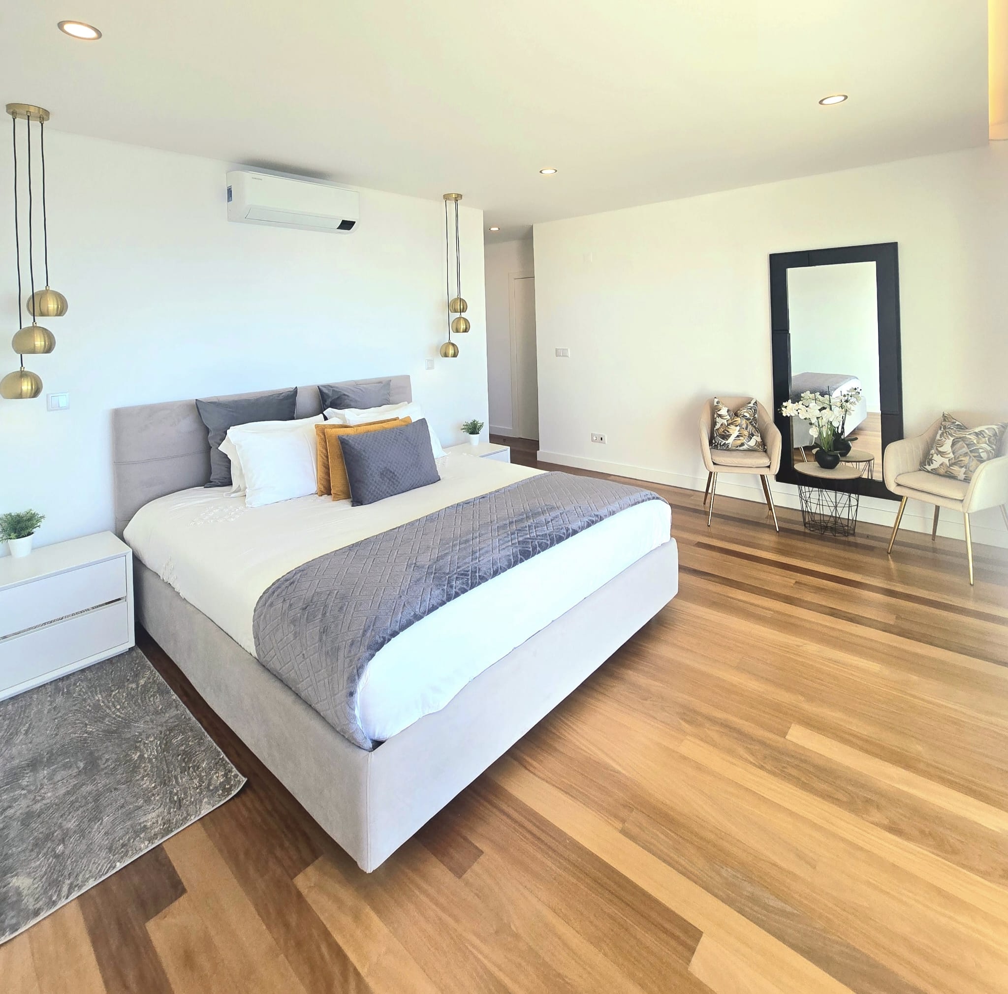 In the outdoor area you will find a garage for up to 2 vehicles, gardens covered with artificial grass, a spacious terrace with a set of outdoor furniture. Therefore, you will be able to enjoy the excellent weather and contemplate the unforgettable sunsets. In addition, We can’t forget our infinity pool with the possibility of heating* and built-in seats. Plus a BBQ and an outdoor wood stove to warm up on warm nights and roast marshmallows!